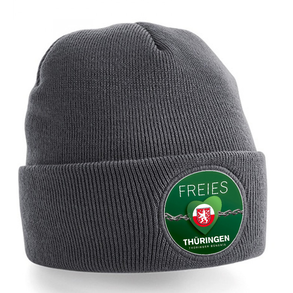 Mütze aus 100% Polyacryl (Soft-Touch). Doppellagiger Strick mit einem 6 cm Baumwoll-Twill-Patch, bedruckt mit dem Logo von Freies Thüringen. Einheitsgröße.